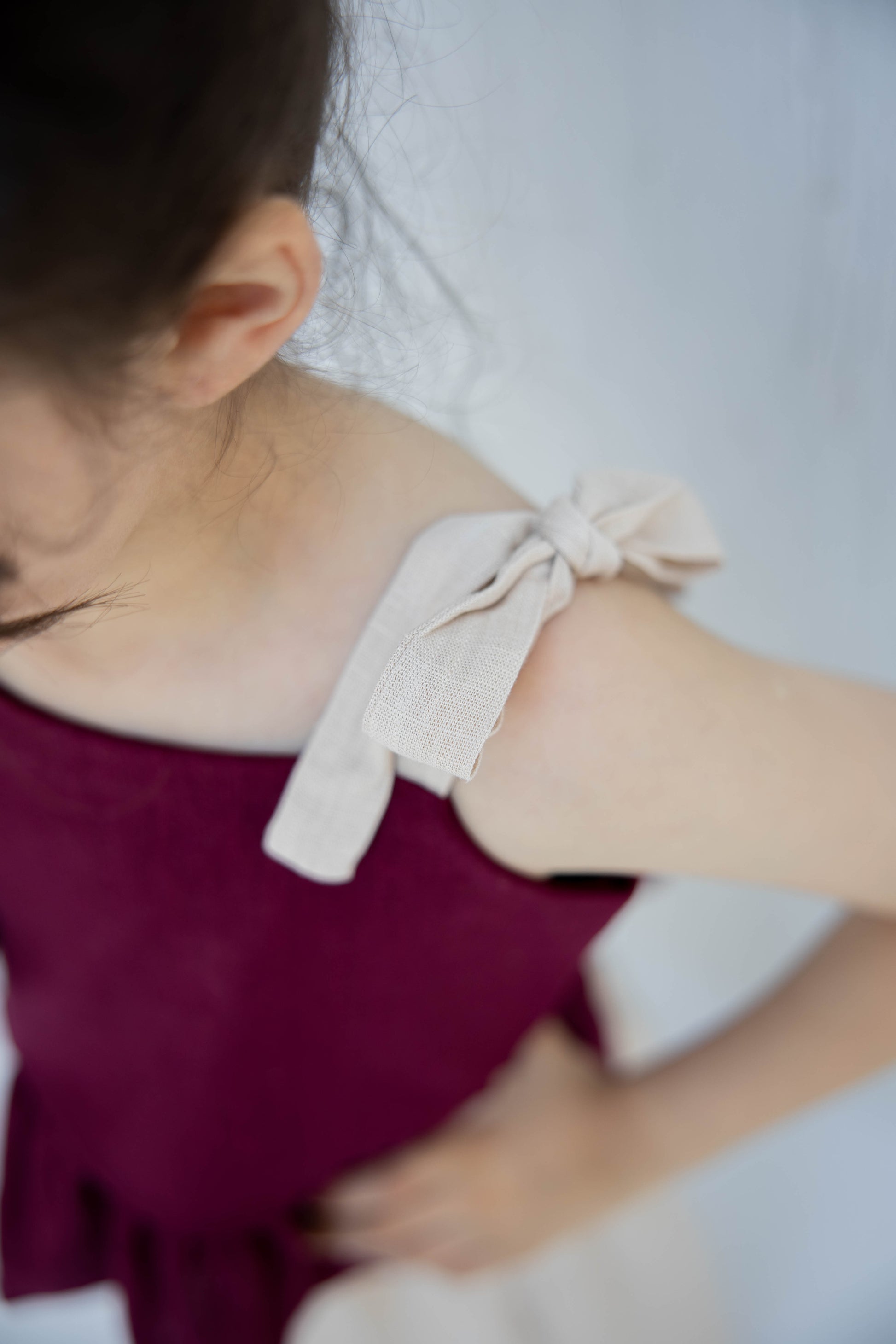 Our charming and full of flair set-the Berry Sweet set brings together a deep berry top with flowy, wide leg linen trousers in a soft sand shade. The top features delicate bow-tie shoulder straps and a gentle peplum for extra sweetness.